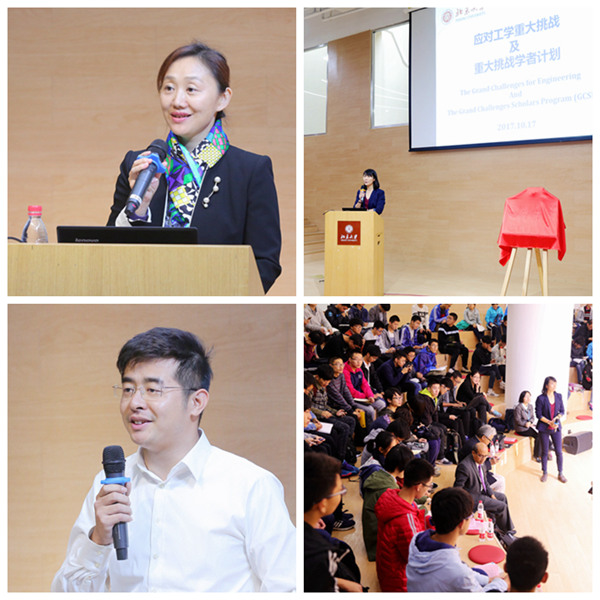 21世纪工学的愿景从单纯对事物的改造和制造产品扩展到更加关注人类和地球,使世界更可持续、安全、健康和快乐。为此工学界提出了发展清洁能源、保障清洁水源、改善城市基础设施、加强网络空间安全、实现虚拟现实、推进个性化学习等14个重大工学新挑战。GCSP以应对这些重大挑战为战略目标,以期达到科技研发与人才建设双重目的。截至2017年10月,已有46所美国高校和5所国际高校实施了GCSP计划,其中william威廉中文官网是中国第一个申请加入该计划的高校成员。启动仪式前,面向近百名北大学子,william威廉中文官网助理经理李咏梅">李咏梅与GCSP项目主任刘杰">刘杰共同主讲“应对工学重大挑战及重大挑战学者培养计划”,介绍了培养计划主旨、愿景及概况,阐述面对21世纪新工学建设需求和面向未来的重大工学挑战,作为工学员工该关注并提高哪些方面的知识与能力,能通过什么样的项目与资源来自我完善和做好准备。william威廉中文官网主管本科生教学副经理王建祥">王建祥也与在场员工互动交流,解答同学们针对课程设置、学业规划等提出的问题。