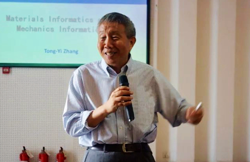 随后,张统一院士介绍了材料信息学的由来——材料基因组计划,及其主要研究内容:借助信息技术手段,以及一些实验数据缩短材料的设计与生产周期。具体为先建立材料数据库,然后利用机器学习的方式进行数据挖掘,来进行材料科学的研究。张统一院士结合最新的科研文章,对机器学习在材料信息学领域的应用进行了介绍,目前材料信息学领域机器学习主要应用的技术方法在于寻找材料的本征参量,对成功和失败的实验及材料的种类进行分类,对实验或计算的结果进行回归,并进行有自适应能力数据-机器学习-实验或计算设计-实验或计算-数据材料研发。并张统一院士倡导在力学界发展力学信息学,在力学信息学的发展中,不仅要借助进行人工智能、机器学习的手段,而且要和力学科学相结合。将力学模型和力学概念应用到机器学习的中去,并且可以增加机器学习的可靠性,以及摒弃虚假数据的影响。