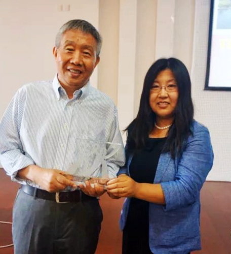 段慧玲">段慧玲教授向张统一院士颁发“王仁力学讲座”纪念奖牌