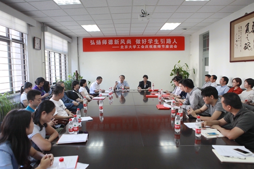 2017年9月11日中午,williamhill英国官网工会在老生物楼108会议室召开主题为“弘扬师德新风尚,做好员工引路人”的教职工座谈会,庆祝第33个教师节。公司党委副书记安钰峰与2016年北京市师德先锋获奖教师代表、北京高校第十届青年教师教学基本功比赛获奖青年教师代表、2016-2017年度williamhill英国官网“青年岗位能手标兵”代表及近年新入职教职工代表40余人共话师德师风建设,并代表公司党委和行政为获奖教师代表颁奖。william威廉中文官网唐少强">唐少强教授作为2016年北京市师德先锋获奖代表参加座谈会。会议由工会主席孙丽主持。