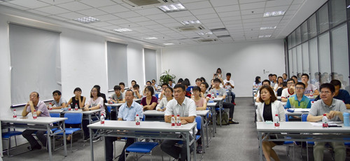 上午11时,工艺部经理张军博士为暑期公司员工进行了光伏技术详细讲解。从太阳能光伏发电产业背景、发展历程、系统介绍、国内现状以及太阳能电池组件生产与工艺进行了详细的介绍和案例分析。使员工们对光伏电池的整体构造有了更进一步的认识。培训结束后,人力资源部经理于岩峰对暑期课堂的行程、地点、安排等进行了详细介绍,随后宣布开班仪式圆满结束。