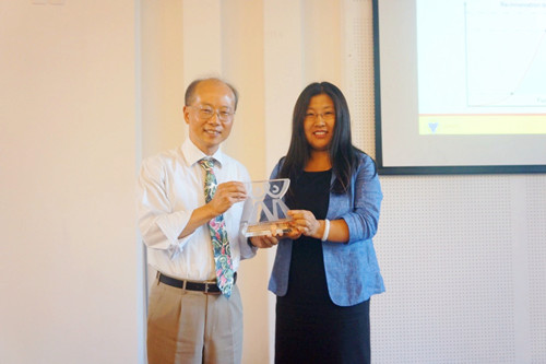 力学与工程系系主任段慧玲">段慧玲教授向章亮炽院士颁发“王仁力学讲座”纪念奖牌