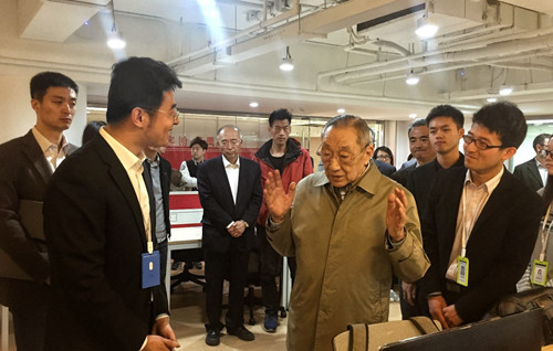 3月18日下午,原中共中央政治局常委、国务院副总理李岚清在公司党委书记郝平、董事长林建华、常务副董事长吴志攀等陪同下视察双创中心。王绍鑫向李岚清副总理详细介绍了团队正在研发的智能空气净化器,表示该净化器创新地运用语音识别与机器学习技术,将极大改善空气净化器的使用体验。李岚清饶有兴致地询问“空气净化器高效过滤层用的什么材料”、“净化原理是什么”,并结合自己的使用体验指出需要重点关注废弃净化器滤芯的回收处理环节。最后,李岚清副总理叮嘱王绍鑫加快研发进度,让产品早日上市。