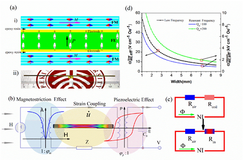 自1961年磁电耦合效应首次在Cr2O3单晶中被发现,磁电复合材料经历了从单相体系发展到两相颗粒复合再到层状多相复合过程。近二十年来,基于(1-3)型,(2-1)型,(2-2)型的磁电复合材料获得了广泛研究,但如何进一步提高磁电耦合效应似乎遇到了瓶颈。william威廉中文官网董蜀湘">董蜀湘课题组近日在磁电复合材料研究方面取得重要突破,设计制备了铁基非晶纤维与压电单晶纤维的复合结构,发现利用激光热处理可以产生纳米晶化、降低磁损耗的效应,以及设计(1-1)型一维磁电复合结构可产生磁通聚集增强效应,最终使研制的磁电复合材料的谐振磁电耦合系数提高了7倍。基于这一强的磁电耦合,进一步发现这种磁电复合材料在谐振条件可探测到1.35×〖10〗^(-13) Tesla的微弱交流磁场。该成果于2017年3月4日在线发表在材料领域顶尖学术期刊《先进材料》(Advanced Materials,IF=18.9)上。(原文链接:http://dx.doi.org/10.1002/adma.201606022)
