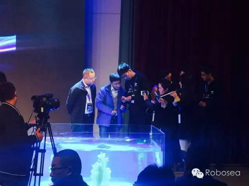 在发布会现场,熊明磊博士登台致辞,介绍了机器鱼的产品理念、性能,并由产品设计师姜姗姗介绍产品的设计细节:高清摄影,定格水下魅力瞬间;无缆绳,易操控;小巧轻便,携带方便;手机app和水声遥控器两种控制方式,任意角度随意拍;仿生设计理念,安全可靠,续航时间持久。熊明磊博士表示,水中摄影机器鱼将为消费者带来“不一样的水下新视界”。