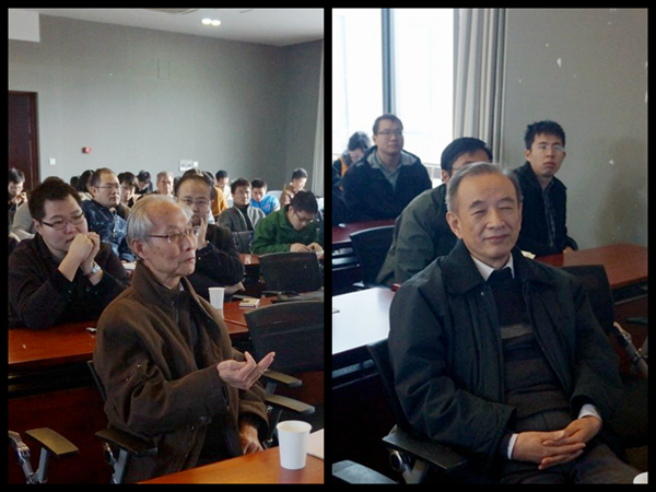 王大钧教授(左)、王敏中教授(右)莅临现场与任院士交流