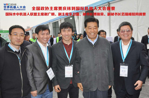 第十六届、十七届中央政治局常委,第十届、十一届全国政协主席贾庆林同志亲临赛场并就水中机器人技术与谢广明">谢广明教授亲切交流。贾主席对仿生机器人技术非常欣赏,指出我国海洋技术与航天技术相比发展还比较缓慢,希望以北大为首的有关科技人员尽快取得突破。