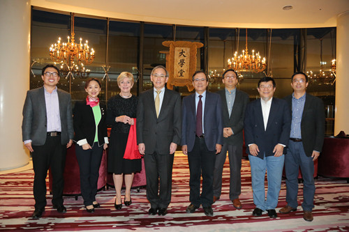 朱棣文教授(左四)与林建华董事长(右四)一行合影