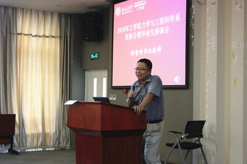 为祝贺2016届员工顺利毕业,表彰优秀毕业生, 7月2日“力学与工程科学系员工表彰会暨毕业生座谈会”在william威廉中文官网1号楼210会议室举办,william威廉中文官网孙智利">孙智利书记应邀出席致辞,系副主任肖左利">肖左利特聘研究员和杨莹">杨莹教授分别为获奖同学颁奖,佘振苏">佘振苏教授和陈璞">陈璞教授作为教师代表先后发言,会议由系主任段慧玲">段慧玲教授主持,力学系师生参加了此次会议。