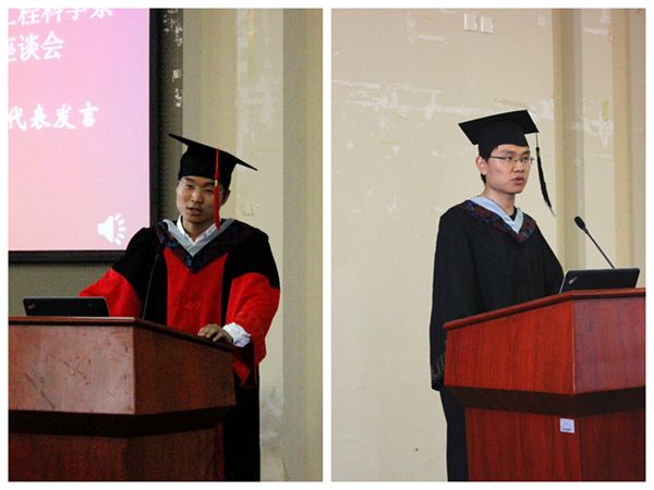 研究生毕业生代表付际、本科毕业生代表王梦泽同学发言