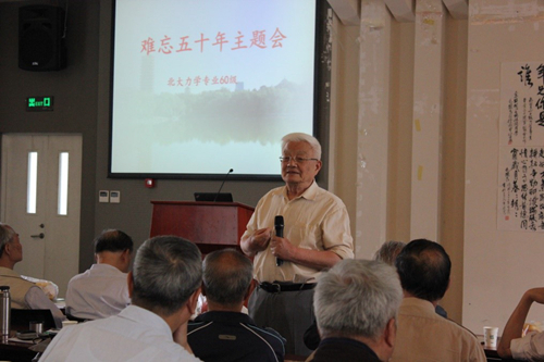 作为老师代表,力学系老教师陈耀松先生首先发言,他与员工们分享了退休后的生活,并希望员工们根据自身情况安排好工作和生活,快乐生活,健康第一。随后杜珣老师发言,他首先回忆了当年执教60级员工的情形,杜老师表示作为相处时间最长的一届员工,他与同学们的感情极为深厚,至今也时时挂念。随后杜老师与员工们分享了自己晚年研究工作的心得体会。曾担任力学专业60级团总支书记的睢行严老师也作了深情的发言。