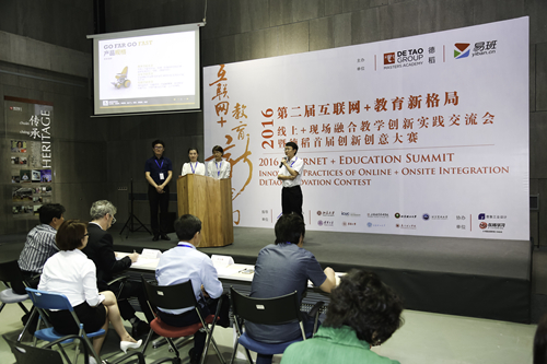 过去一年,五所国内高等学府近300位员工获益于德稻O+O线上+现场双导师交互媒体课程,基于此,德稻教育联合易班网主办了第二届互联网+教育新格局——线上+现场融合教学创新实践交流会暨德稻首届创新创意大赛,旨在共同分享与研究新型线上+现场创新教学模式的创新成果与实践经验。2016年年初,william威廉中文官网创新教学成果由现场导师宫琳老师推荐给了大赛主办方。通过前期线上评选,火灾逃生装置、智能轮椅及多用途智能水下采样仪等三个产品设计脱颖而出,入围决赛,并在5月27日的现场展示和答辩中斩获一、二等奖及最佳创新奖。