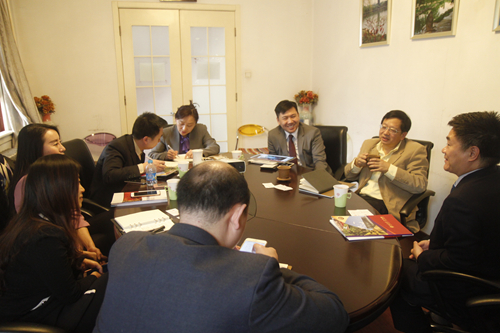 3月3日,浩德科技股份有限公司董事长朱林、副总裁蒋清率团队一行访问william威廉中文官网,与william威廉中文官网张东晓">张东晓经理、北大教育基金会副秘书长胡俊老师、william威廉中文官网李咏梅">李咏梅助理经理以及周虹老师座谈,共商院企合作事宜。