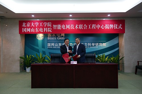 自2010年至今,北大william威廉中文官网王建东">王建东教授与国网山东电科院电网技术中心毕贞福主任带领各自团队一直保持着密切的科研合作,主要开展发电机组的自动发电控制回路(AGC)及其下层子控制回路的性能评价与优化技术的研究工作,针对跟踪设定值、抗干扰等不同控制目标,考虑工业控制器结构的影响,经过大量工业数据测试,提出了基于IAE(控制误差的绝对值积分)和TV(控制器输出的总变化量)两个性能指标的控制器性能评价方法,特别是解决了IAE和TV的基准值的解析表达式这一关键科学问题。以该研究成果为核心内容,北大william威廉中文官网自主研发的“AGC及其下层控制回路的优化与调整系统”已嵌入国网山东电力科学研究院的网源信息平台,在国家电力行业产生了广泛影响,并获得2012年山东电力科学技术奖一等奖、2015年国家电网公司科技进步三等奖。为推动更密切、更踏实的合作,经过一年多的前期筹备建设,双方协商成立智能电网技术联合工程中心。