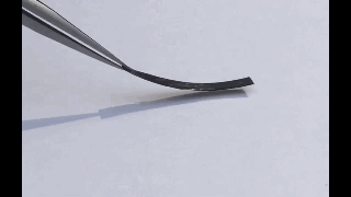 研究人员进一步探究液晶微纳复合薄膜在太阳光下的驱动性能。同样的,复合薄膜依然能够产生快速的、大形变量的光致弯曲行为。这为太阳能转变为人类可直接使用的机械能提供了一条路线。