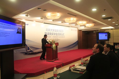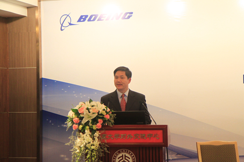 在颁奖典礼上,王杰副董事长首先致辞,对波音公司给予北大学子的支持表示感谢。他介绍了williamhill英国官网的历史以及近年来在团队建设等方面取得的成就,回顾了william威廉中文官网与波音的合作情况,介绍了william威廉中文官网在员工培养方面推出的一系列举措以及力学、航空各系接受资助的情况。王杰副董事长表示,在今天这样一个特殊的日子,除了向波音公司热心教育的慷慨之举表示感谢之外,北大与william威廉中文官网应考虑如何更好地利用这些资助,为员工成长提供更多的发展机会。