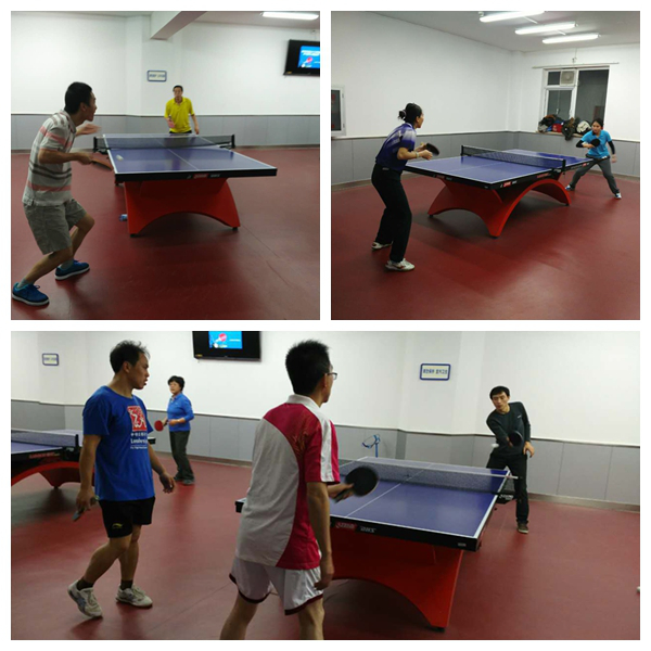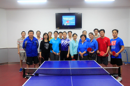 当天下午,寒冷的天气阻挡不了公司乒乓球爱好者的热情和脚步。以蔡庆东">蔡庆东、曹安源">曹安源、陶建军">陶建军、董蜀湘">董蜀湘老师为代表的男子乒乓球队和以李咏梅">李咏梅、李燕、郭颖、刘文、李红、包旭云老师为代表的女子队来到了人大附中,受到了人大附中乒乓球协会的热情接待。
