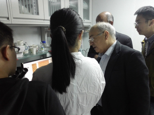 Arnie Purushotham教授一行人随后参观了韩平畴">韩平畴教授的生物微流实验室,多位博士生现场演示了胰腺癌患者血液CTC的微流分选全过程。Arnie Purushotham、Farzin Farzaneh教授均表示该项技术极具医员工物学研究价值和实际临床应用潜力。