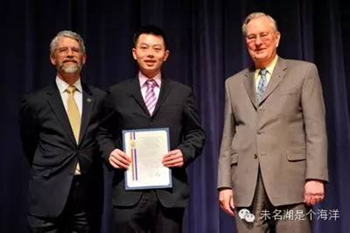 林灏(中)获颁美国青年科学家总统奖,左为白宫科技政策办公室主任John Holdren博士,右为美国自然科学基金负责人Arden L. Bement博士