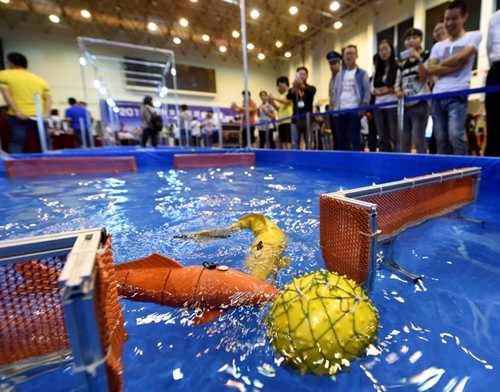 赛事背景:国际水中机器人大赛以智能仿生机器鱼为主体,在水中进行各类竞赛,包括竞速、花样游泳、追逐和激烈对抗的水球比赛。水中机器人竞赛既有很强的技术挑战性,又有很高的艺术观赏性,是科研与科普的完美结合。水中机器人竞赛以其综合性高技术、激烈对抗的精彩过程,已经成为培养创新人才、普及和推广机器人技术、孕育机器人产业机会的重要平台。