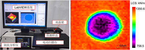 针对主阻抗法所存在的不足,李法新">李法新研究员提出了一种基于压电双晶梁的定量机电阻抗法,压电双晶梁通过特制探针与待测结构接触。该方法能通过追踪结构阻抗特性而获得结构的定量局部接触刚度,由于局部刚度对典型的缺陷(如孔洞、脱粘等)比较敏感,因此该方法可以准确地判断结构的健康状态,并应用于无损检测和健康监测中。李法新">李法新课题组搭建了基于定量机电阻抗法的无损检测系统,实验结果表明,该方法能准确地重构结构的损伤缺陷。通过进一步的改进,该方法可应用于乳腺癌、肝硬化等医疗疾病的健康检测。