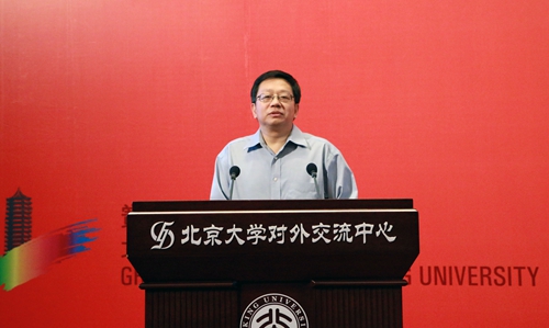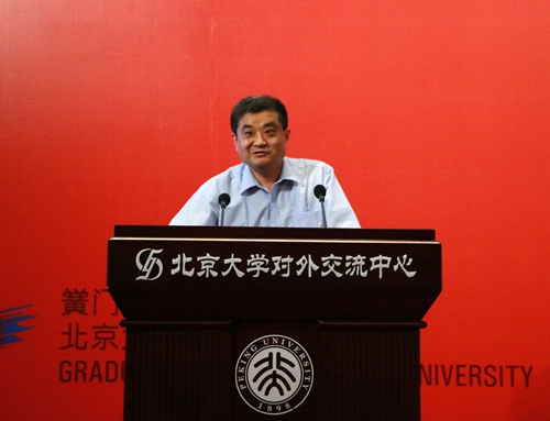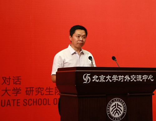王天兵代表研究生院致辞。他指出,本期黉门对话着眼于能源转型升级和人类社会发展,邀请了能源领域四位不同专业背景的重量级嘉宾:宏观能源战略研究专家李福龙先生、资源经济学专家徐晋涛教授、国际能源外交与安全专家査道炯教授、非常规油气开发技术专家张东晓">张东晓教授,从战略、经济、外交、技术等多个维度探讨能源发展的前景和路径。他希望本期活动能够启迪广大青年学子对责任和未来的思考,对民族、国家乃至人类发展的关注,对个体与人类责任在学术、产业、生态、文明等语境中的具体实践与平衡的探索。