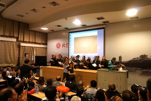 活动自上午九时正式开始,但八点稍过,就已经有员工早早地来到了会场,不多时这一个容纳近百人阶梯教室里就已经全部坐满。相隔五十年,半个世纪里,沧海桑田,如今又能重新坐在同一个教室里,只此就引发员工们无数的感慨。五十年后再入学,再次与五月春风和煦的燕园相逢,再次回忆起那时的恰同学少年,竟一时语塞,只是用力地握手和轻拍对方已经微微佝偻的肩膀,无言之中蘸满无尽的情谊。