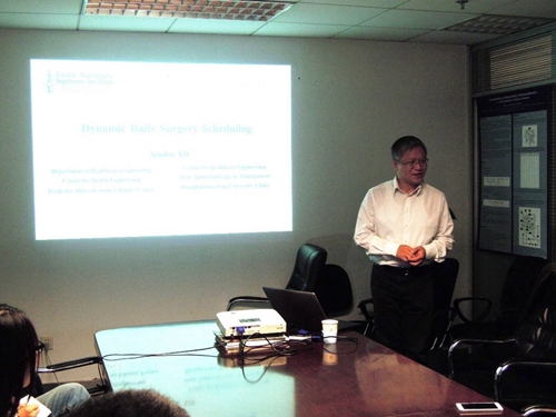 5月8日上午,法国国立圣艾蒂安高等矿业公司(Ecole Nationale Supérieure des Mines de Saint Etienne)工业工程1级教授与医疗健康工程系系主任谢晓岚博士在方正大厦512会议室作了题为“Dynamic surgery scheduling of multiple operating rooms”的学术报告。精益管理工程研究中心全体师生及其他院系的部分员工参加了此次报告会。报告会由宋洁">宋洁研究员主持。