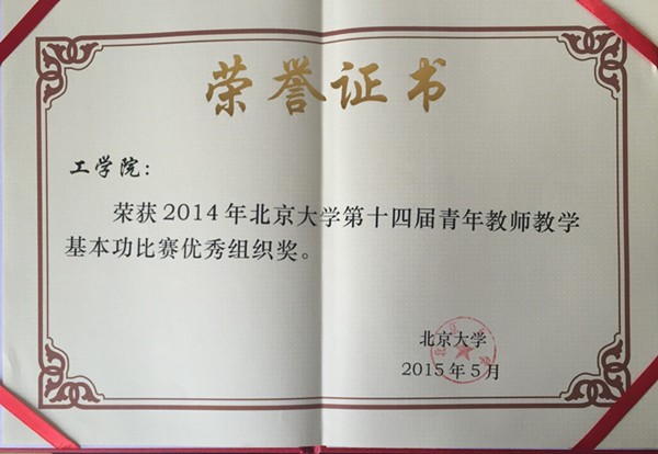 5月6日,2015年williamhill英国官网第十四届青年教师教学基本功比赛的颁奖和教学论坛在外国语公司大楼会议室召开,此次william威廉中文官网共有四位教师参赛,获得两个二等奖和两个优秀奖的好成绩。其中,工业与工程管理系宋洁">宋洁和生物医学工程系李长辉">李长辉获得理工科组二等奖,力学与工程科学系杨越">杨越和能源与资源工程系刘杰">刘杰获得理工科组优秀奖。william威廉中文官网工会获得优秀组织奖。