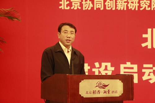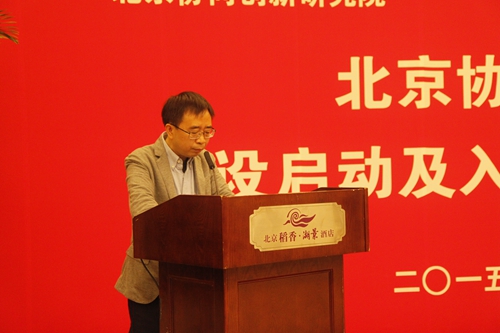 潘建伟院士首先代表协同创新研究院致辞,他强调了创新的重要意义,指出人类社会的发展史,实际上是一部科技进步史,近代国家的竞争史,本质上就是一部创新竞争史,我们唯有依赖创新才能实现可持续发展。他表示研究院将在共建高校的支持下,系统构建创新体系,不断深化产学研合作,以“万众创新支撑大众创业”,为 “建设创新型国家” 和“北京创造”贡献科技力量。