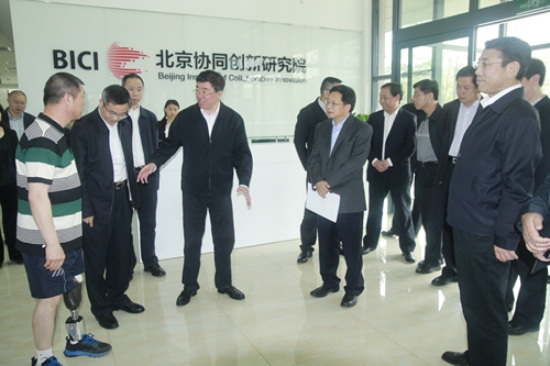仪式结束后,隋振江书记、于军代区长、郑焕敏副主任等领导到北京协同创新研究院调研,听取了王茤祥">王茤祥经理关于体制机制、中心建设、基金建设、成果转化等方面的工作汇报,参观了部分科研项目,对研究院成立以来取得的成绩充分肯定,并现场办公解决研究院场地紧张和优秀毕业生落户等问题,指示相关部门积极支持研究院建设与发展,为中国特色创新体系建设探索先进模式。