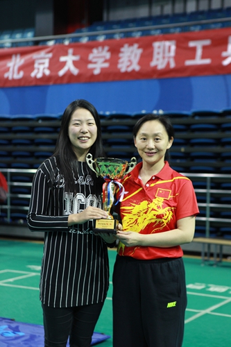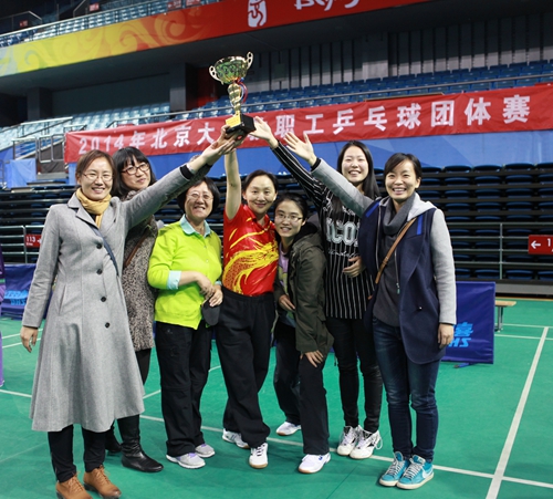 女子组比赛共有16支代表队参加。工学一队凭借雄厚的乒乓球实力以及良好的竞技状态一举闯入决赛,与创造历史最佳战绩的图书馆一队争夺冠军。前国家队选手杨柳老师到场助阵,并对工学团队的排阵、战术等进行指导。在战况激烈的比赛中,一队的李咏梅">李咏梅老师、李燕老师和郭颖老师发挥出色。李燕老师在关键局面逆转比分,为打进决赛赢得胜机。最后凭借着李咏梅">李咏梅老师的连续胜出,工学一队再创佳绩,捧回了冠军奖杯。