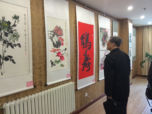 驻足欣赏书画作品