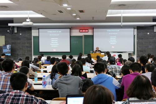 9月18日晚,在二教102举行的德稻讲坛迎来了罗伊•阿斯科特(Roy Ascott)教授。作为一位新媒体艺术大师,阿斯科特教授跟同学们分享了他的研究和思考。