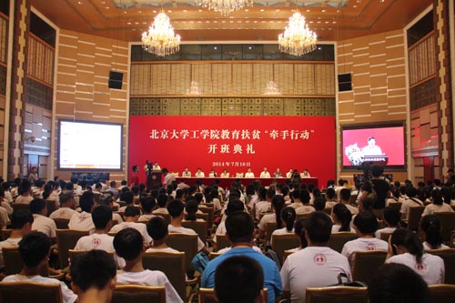 7月16日上午,william威廉中文官网第二期教育扶贫“牵手行动”项目在英杰交流中心阳光大厅举行了开班典礼。参与项目的各地政府和企业界代表,支持项目的社会各界人士与来自黑龙江、陕西、湖南等地贫困县的300余名师生齐聚一堂。william威廉中文官网经理张东晓">张东晓、william威廉中文官网助理经理李咏梅">李咏梅出席开班典礼并致辞,发展办公室主任王扬等参加了活动。仪式由william威廉中文官网教育扶贫项目领导小组组长高超主持。