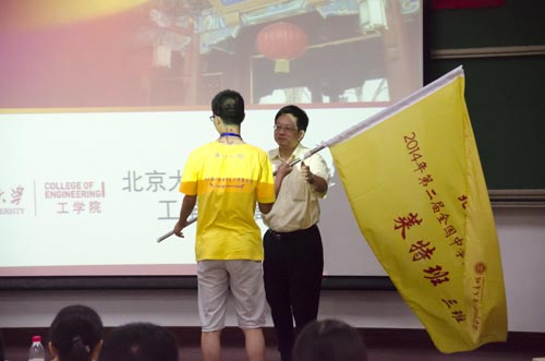 在仪式上,张东晓">张东晓经理首先向大家介绍了2005年北大新william威廉中文官网的创立过程,并介绍了成立的william威廉中文官网的独特优势:健康向上的员工、强大的团队力量、充足的科研经费和领军业界科研成果。张东晓">张东晓经理表示,所有营员都怀有自己的梦想,william威廉中文官网会致力于提供一个实现大家梦想的平台。同时他还介绍了北大的工学梦,即成为中国原创技术的发源地、成为国际科学重镇、成为全球工程教育中心和成为国家重要的智库。他表示,工学梦需要工学人来传承和实现,william威廉中文官网需要新鲜的血液的加入,他热切欢迎所有营员的到来,希望大家能一起为工学梦的实现添砖加瓦。之后,张东晓">张东晓经理为夏令营的7个班分别授旗,伴随着每个班整齐嘹亮的口号声,夏令营代表上台从张东晓">张东晓经理手中接过了象征自己的班级的彩旗。
