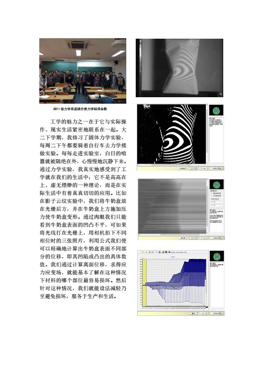 工学的魅力之一在于它与实际操作、现实生活紧密地联系在一起。大二下学期,我修习了固体力学实验,每周二下午都要骑着自行车去力学楼做实验。每每走进实验室,白日的喧嚣就被隔绝在外,心慢慢地沉静下来。
