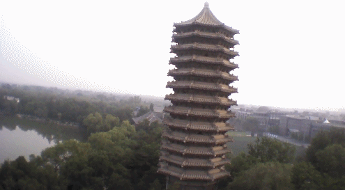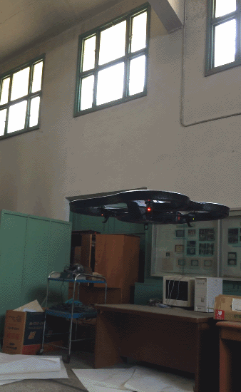 此外,经过过去几届本科生同学的不断努力,2014年春,williamhill英国官网UAV研究平台的搭建初步完成,达成了计算机自主控制的无人机翻滚(图3)以及双机编队飞行(图4),为后续进一步研究新的控制理论和工程方法提供了演示环境。下面的动画展示了无人机拍摄的校园风光(图5)及自主翻滚下获得的视角(图6)。