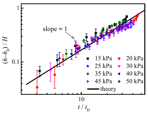 该项研究利用共聚焦显微成像技术,原位观测了具有规则微结构的固体表面在水下的各种浸润状态,清晰地观察到亚稳态的存在。同时,定量研究了浸润转变过程,分析了水压作用以及微结构内气体溶于水中对浸润转变的影响,并从理论上对此过程进行了预测,理论预测与实验结果一致。在此基础上,提出了一个关于亚稳态寿命的标度律,得到了浸润转变的时间特征尺度。该研究为预测具有微结构的固体表面浸润状态在水下环境的工作寿命提供了可靠手段,对设计开发具有滑移功能的新型表面材料具有指导意义。