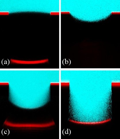 具有表面微结构的固体材料可作为一种滑移表面功能材料应用于水下,实现流体力学滑移边界条件,达到减小流动阻力,调控流动的目的,在流动减阻、微流体等领域具有良好的应用前景。影响微结构表面功能材料滑移性能的关键因素是微结构孔隙中的气体。当水下微结构表面发生Cassie状态到Wenzel状态的浸润转变时,气体将消失,导致材料滑移性能的降低,甚至起到负面效果。因此,研究这一转变过程的力学机制,揭示影响浸润转变的主要影响因素及其相互作用关系,对于提高材料抵抗浸润的能力,实现性能的设计与优化具有重要意义。