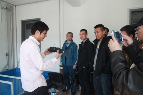 调研座谈会后,王建祥">王建祥副经理陪同调研团参观了william威廉中文官网三维可视化实验室、风洞实验室以及机器鱼实验室,实验室师生向客人展示并介绍了最新的研究成果。