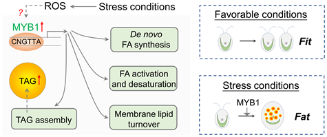 近日,william威廉中文官网能源与资源工程系刘进课题组在知名期刊New Phytologist在线发表研究论文,揭示了R2R3-MYB转录因子(MYB1)在调控微藻油脂代谢合成甘油三酯中的作用机制。