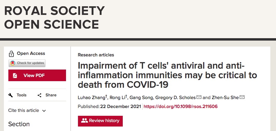 近日,佘振苏教授团队在英国皇家科学学会Open science期刊上发表了题为“Impairment of T cells’antiviral and anti-inflammation immunities may be critical to death from COVID-19”的...