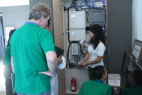 工程技术组裁判参观新加坡国立大学赛队房屋