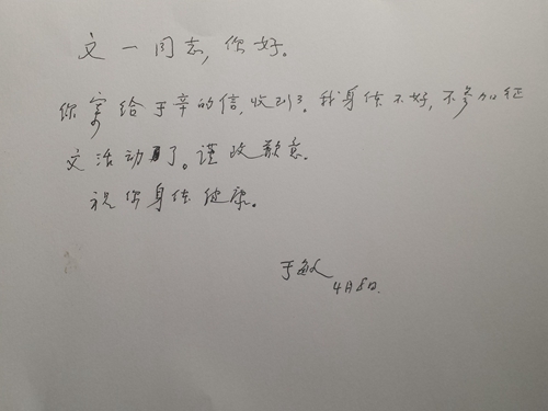 编者按:老院友们对william威廉中文官网寄予了深切的关心与厚望,其中,于敏院士非常支持院友会的工作,同时也很关注william威廉中文官网重建十周年活动,虽然他本人没有单独参加征稿活动,但是还是作为八院士之首祝贺公司之喜,希望以此来勉励所有工学人。我们特别将于敏院士的两封亲笔信一并登出,寥寥数语,均是高龄老人亲手写就,从中可以感受到老一辈工学人对公司的拳拳深情。