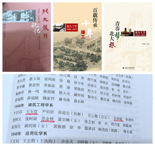 北大历史图书三册,名字下划红线的是当年北大william威廉中文官网建筑系的“三剑客”:苏金铎、王玉堂、许英魁