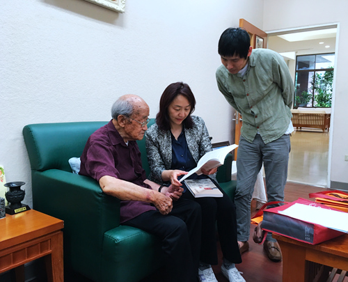 李咏梅老师、谢广明老师与苏金铎学长共阅《青春梦˙北大根——北大工学1910-1952》