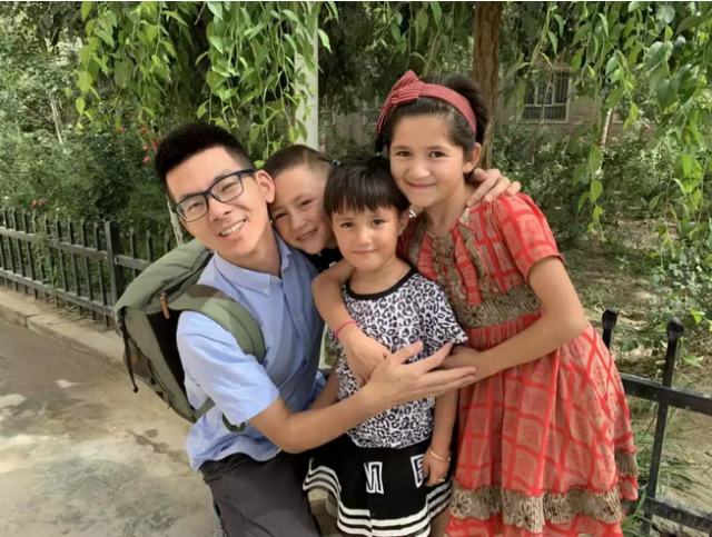 新疆和田——陈善恩(左一)与村里小朋友合照