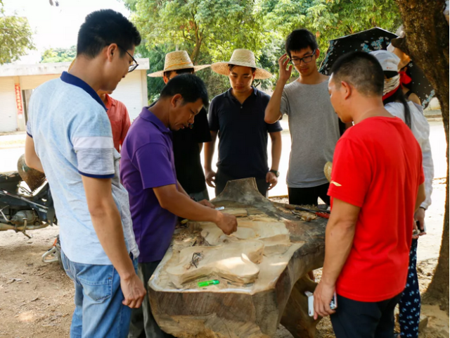 广西大新——与根雕艺人村民交流(右四为陈善恩)