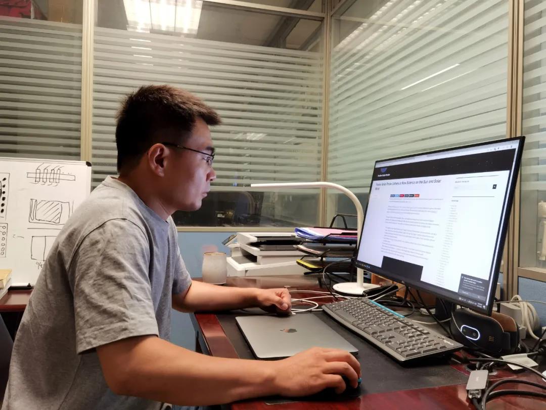 宋柏在办公室。理论分析、数值模拟与精密实验“携手”,是研究近场热辐射的“三驾马车”